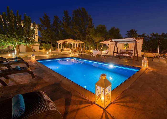 Konyhai edények, mikrohullámú sütő és üvegáru szintén biztosított a főzéshez. A legközelebbi reptér a Rodoszi nemzetkozi repuloter, mely 20 km-re van a szállástól. A villa továbbá rendelkezik a helyszínen elérhető napozóteraszhoz és szezonális kinti medencéhez.